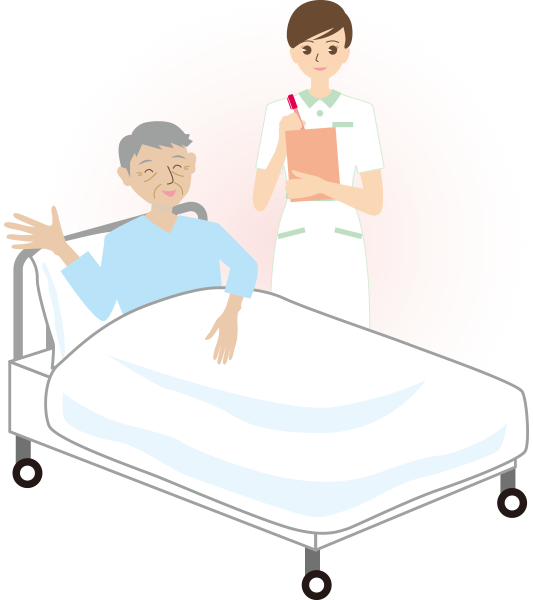 療養上のお世話、医療処置、医療器具の管理、ご家族への介護支援、相談をします。